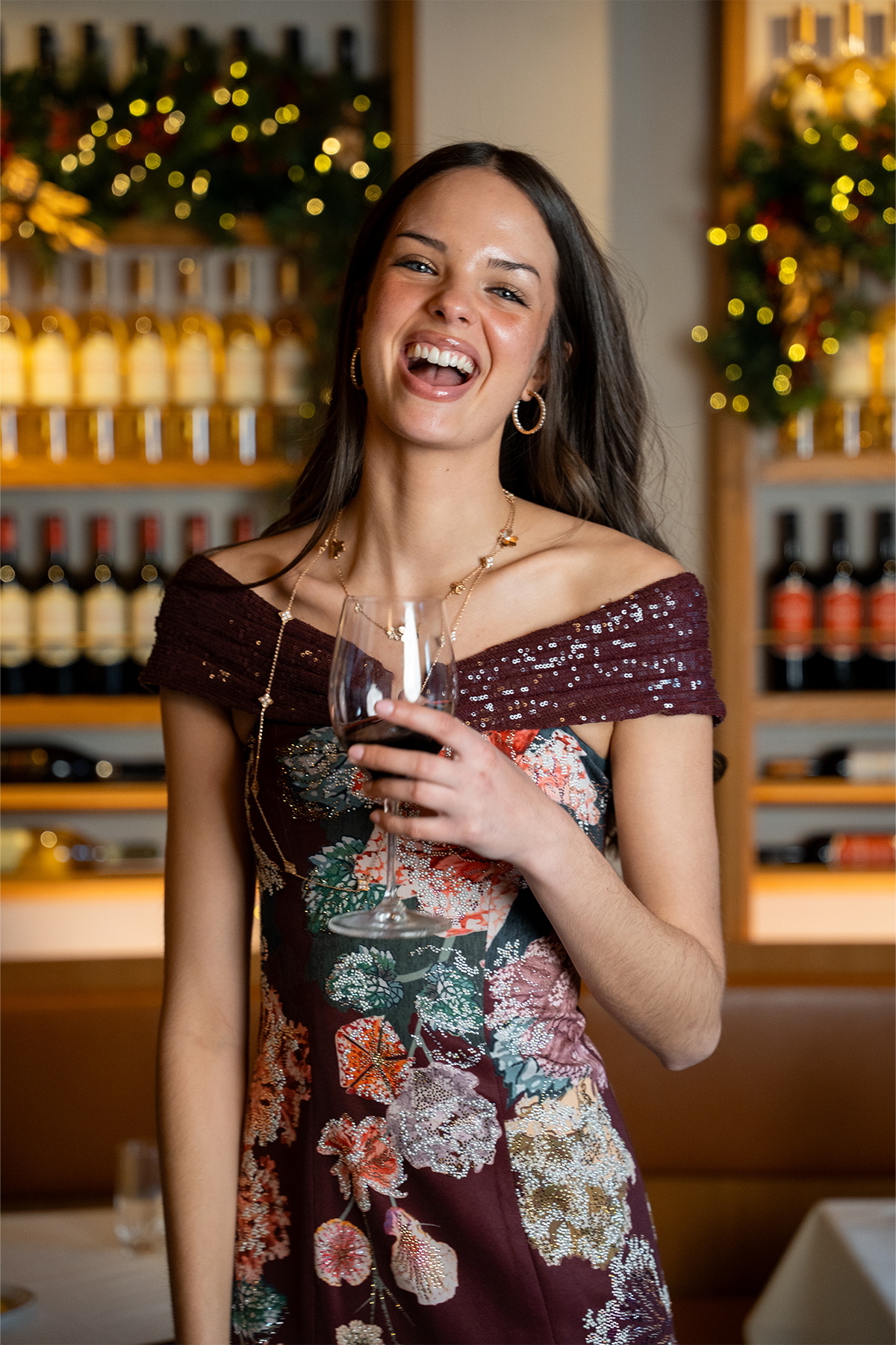 A head-turner from Ranna Gill’s Fall 2025 drop, the Glen Gown comes in wine crepe with an off-shoulder neckline and an elongating column silhouette. The floral print is set in coral, teal, and ivory which builds in richness from the bodice to the hem, layered with sequin detail for a hint of drama. The thigh-high slit adds just enough edge to the otherwise sleek frame. Designed to contour the body, it shapes and defines without feeling overdone. Whether you're headed to a rooftop birthday dinner or an evening out that calls for something striking, this piece brings the right amount of impact.
